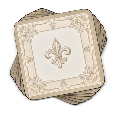 Pimpernel FDC-Fleur de Lys Coasters - Set of 6 (4” x 4”), Cork Backing, Elegant Fleur de Lys Design, Easy to Clean - Heat & Stain Resistant