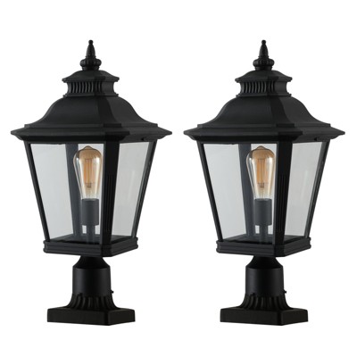 Gulches Outdoor Lamp Posts, 18-22" Vintage Black/Bronze Lanterns with Clear Glass, Waterproof for Garden, Patio, Pathway (1-2 Pack)