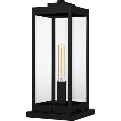 Possini Euro Design Jersey 17 1/2" High Modern Outdoor Post Light Fixture Pole Porch House Exterior Weatherproof Matte Black Metal Clear Glass Shade