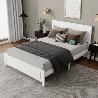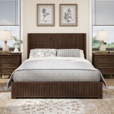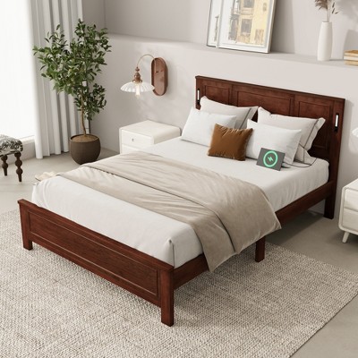 - wood queen platform bed