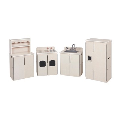 Guidecraft EdQ Kids Kitchen Stove, Sink & Oven Set - Natural: Wooden Kids Kitchen Playset, Pretend Play Toy w/ Interactive Knobs & Storage Shelves