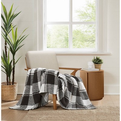 Brooklyn Loom 50"x70" Dusted Plaid Throw Black