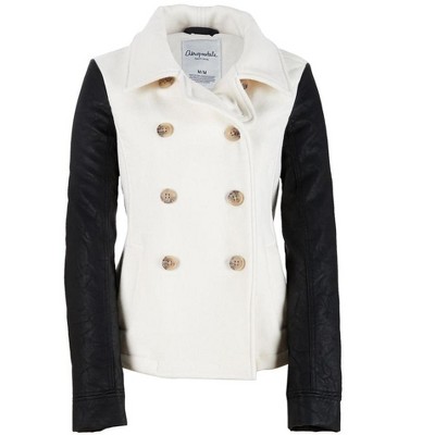 Aeropostale Womens Leather Sleeve Pea Coat