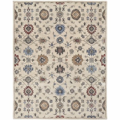 Tan and Gray Wool Floral Hand Tufted Area Rug