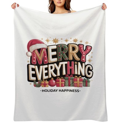 FIONECA Christmas Blanket with Ornaments Stars and Holly Soft Fleece Cozy Holiday Throw Blanket 50x60 inches
