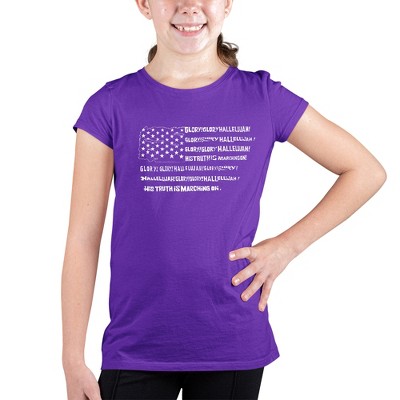 LA Pop Art Girl's Word Art T-shirt - Glory Hallelujah Flag