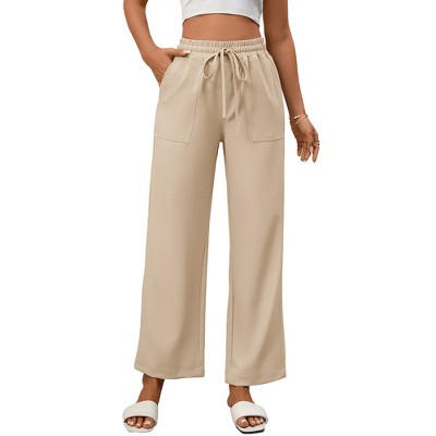 Garvee Women Casual Straight Leg Pants High Waist Drawstring Lounge Trousers with Front Patch Pockets Loose Fit Work Office Slacks