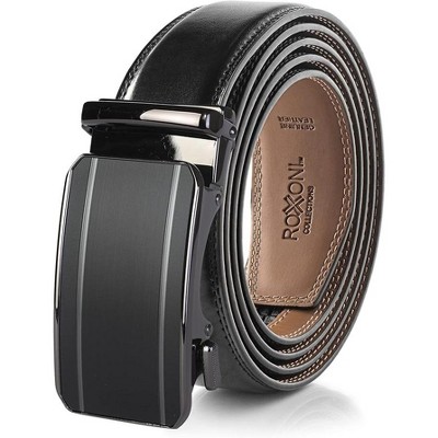 Roxoni Men's Genuine Leather Ratchet Dress Belt with Automatic Double Gloss Buckle, Enclosed in an Elegant Gift Box