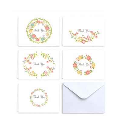 Paper Frenzy Spring Floral Collection Thank You Note Cards & White Envelopes - 25 pack