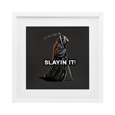 Stupell Industries Slayin' It Grim Reaper Framed Print Under Glass Art, White, 16" x 16"