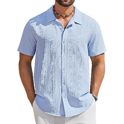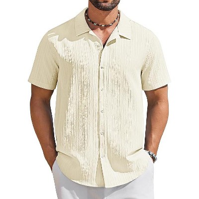 COOFANDY Men's Short Sleeve Casual Button Down Shirts Textured Summer Beach Shirt