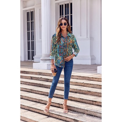 Zeagoo Button Down Shirts for Women Dressy Floral Printed Long Sleeve Blouse Business Casual Work Tops-MZ779-L