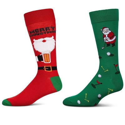 MeMoi Men's 2 Pair Pack Novelty Christmas Holiday Crew Socks