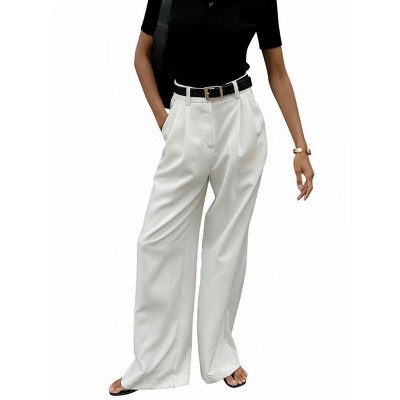 Coolmee Womens Dressy Palazzo Pants Stripe High Waisted Business Slacks Button Flowy Wide Leg Office Work Trousers