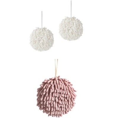 REGALWOVEN Fuzzy Cute Cartoon Decorative Hand Drying Hanging Ball Hand Towels 7" x 7" 2 Pcs