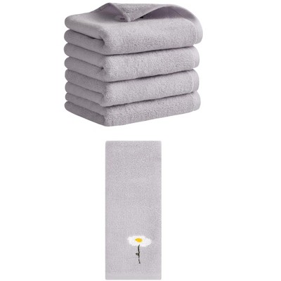 REGALWOVEN 4 Pcs Bathroom Home Decor Cotton Soft Absorbent Floral Hand Towel 13" x 29"