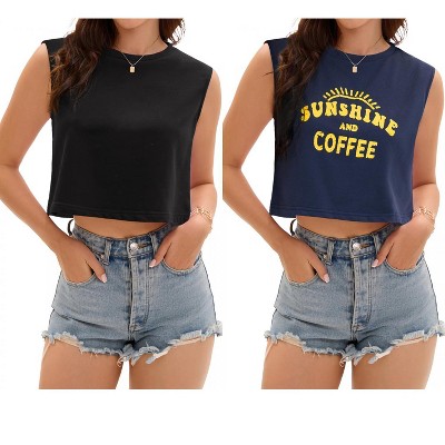 ATHLECHIC Women's Casual Loose Crewneck Sleeveless Crop Tank Top 2 Packs