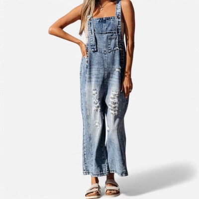 Imily Bela Women's Distressed Denim Overalls Loose Fit Casual Adjustable Strap Bib Jeans Jumpsuit with Pocket