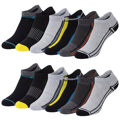 JAMES FIALLO Men's 12-Pack Cushioned Breathable Moisture Control Low Cut Athletic Performance Socks Men