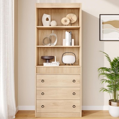 - natural wood shelving units
