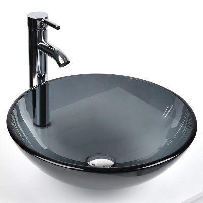 Hrinhom 14.6"W Round Bathroom Sink Above Counter,Modern Porcelain Vessel Sink Without Faucet