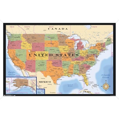 Trends International Map - USA Time Zones Framed Wall Poster Prints