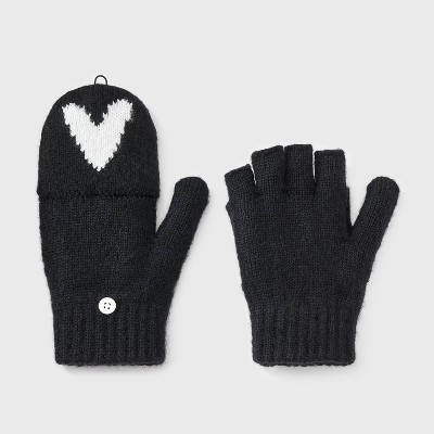 Girls' Cozy Heart Flip-Top Mittens - Cat & Jack™ Black/White