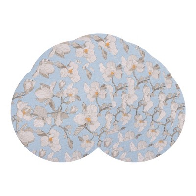 DII Round Floral Placemat Set 6 Piece, French Blue, 15" Dia