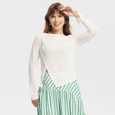 Seta T Women's Lantern Long Sleeve Round Neck High Low Irregular Hem Casual Blouse