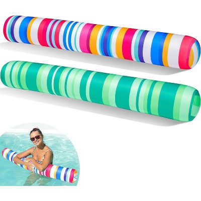 Jasonwell 2 Pack Inflatable Swim Pool Noodles - Soft Fabric Covered Floats for Adults, Colorful & Green, Ideal for Lake & Beach