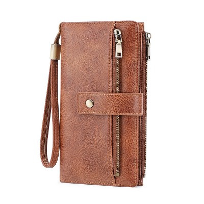CTM Women's Vegan Leather Twist Lock Flap Wallet Wristlet