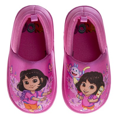 Dora the Explorer Girls Slippers - Plush Non-Slip Comfy Fluffy Lightweight Warm Comfort Soft Aline Indoor House Slippers (Toddler)