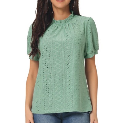 Slickblue Plus Size Textured Koshibo Cap Sleeve Top, Crew Neck, Non-Stretch, Back Button, Mint, Size 1XL–3XL