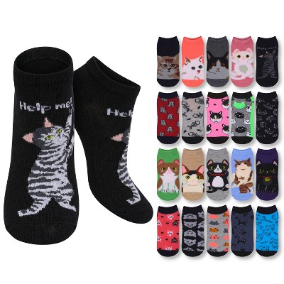 Tipi Toe Womens 10 Pairs Kitty Prints Pattern & Mix Colors For Vibrant Style Low Cut/No Show Socks