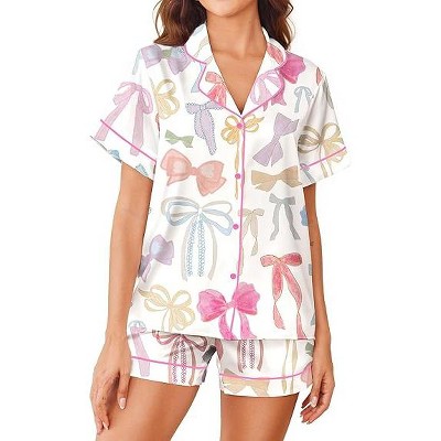 SHESHOW Womens Satin Pajamas Set Short Sleeve Top and Shorts Pjs Sets Button Down Notch Collar Sleepwear