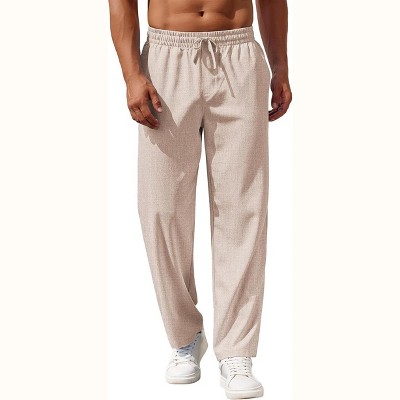 COOFANDY Mens Casual Pants Drawstring Elastic Waist Pants Linen Summer Beach Pants