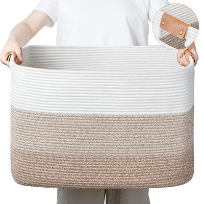 Aoibox Rectangular Woven Basket for Storage 65L Cotton Rope Laundry Hamper Decorative Nursery Blanket Toy Organizer
