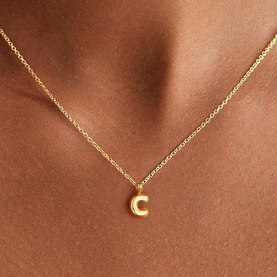 Personalized Chunky Initial Necklace: 14K Gold Plated Bubble Balloon Charm Pendant for Women
