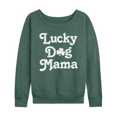 Women's - Instant Message - Lucky Dog Mama Lightweight French Terry Wide Neck Long Sleeve Graphic Shirt