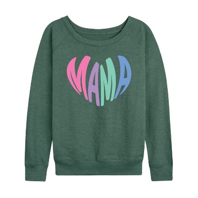 Women's - Instant Message - Mama Heart Lightweight French Terry Wide Neck Long Sleeve Graphic Shirt