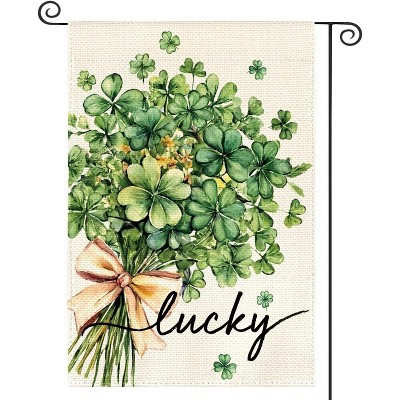 Lomsoe St Patricks Day Garden Flag Shamrocks Truck Yard Flag St Patricks Day Welcome Sign St Patricks Day Gift Decor Single Side 12x18Inch