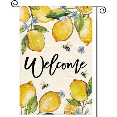 Lomsoe Lemon Bee Garden Flag, Farmhouse Welcome Yard Flag, Spring Summer Outdoor Porch Decor, 12x18 Inch