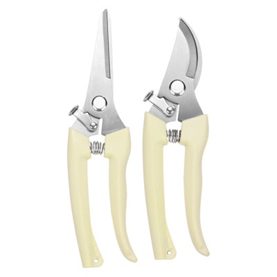 2-Pack Garden Shears Set - 1 Bypass Pruning Shear & 1 Straight Blade Scissor, Sharp Lightweight Tools for Plants Flowers Branches