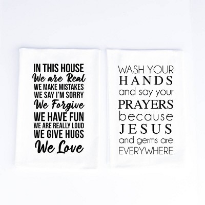 2pk Cotton Wash your Hands Kitchen Towels - Wildwood Landing: Typography, Machine Washable, 30"x30", White, Set of 2