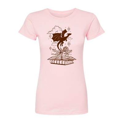 Women's - Instant Message - Dragon Flying Out Of Book Fitted Graphic T-Shirt