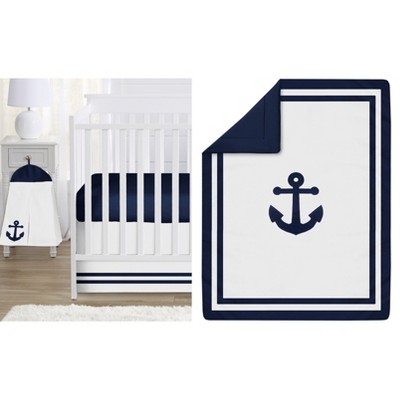 Sweet Jojo Designs Boy or Girl Gender Neutral Unisex Baby Crib Bedding Set - Anchors Away White and Blue 4pc