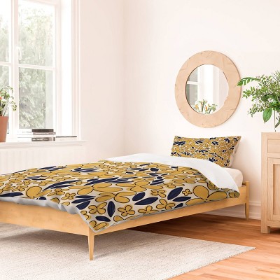 Schatzi Brown Libby Floral Marigold Duvet Cover Set Yellow - Deny Designs