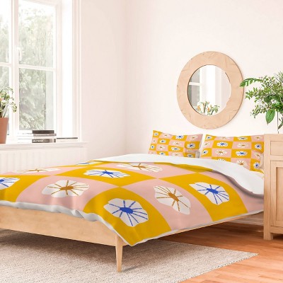 Deny Designs Alisa Galitsyna Four Flower Pattern Duvet Cover and Pillow Sham Set Yellow