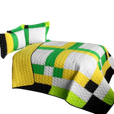 Slickblue Full/Queen Quilt Set, Plaid Design, TC Fabric, Yellow-Black/Green Colors, Machine Washable, 3PC