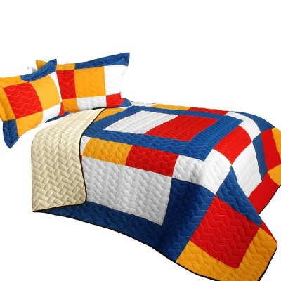 Slickblue Full/Queen Quilt Set, Vermicelli Quilted Patchwork, Reversible, Full/Queen, Multiple Color & Designs, 3pc
